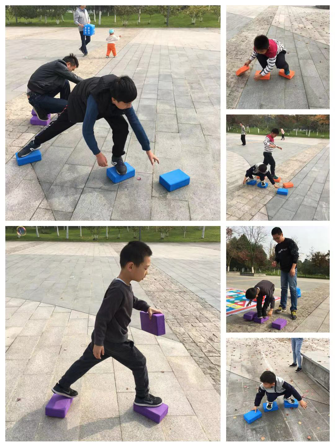 “摸石過河”,孩子的協調性似乎比爸爸媽媽們好的多