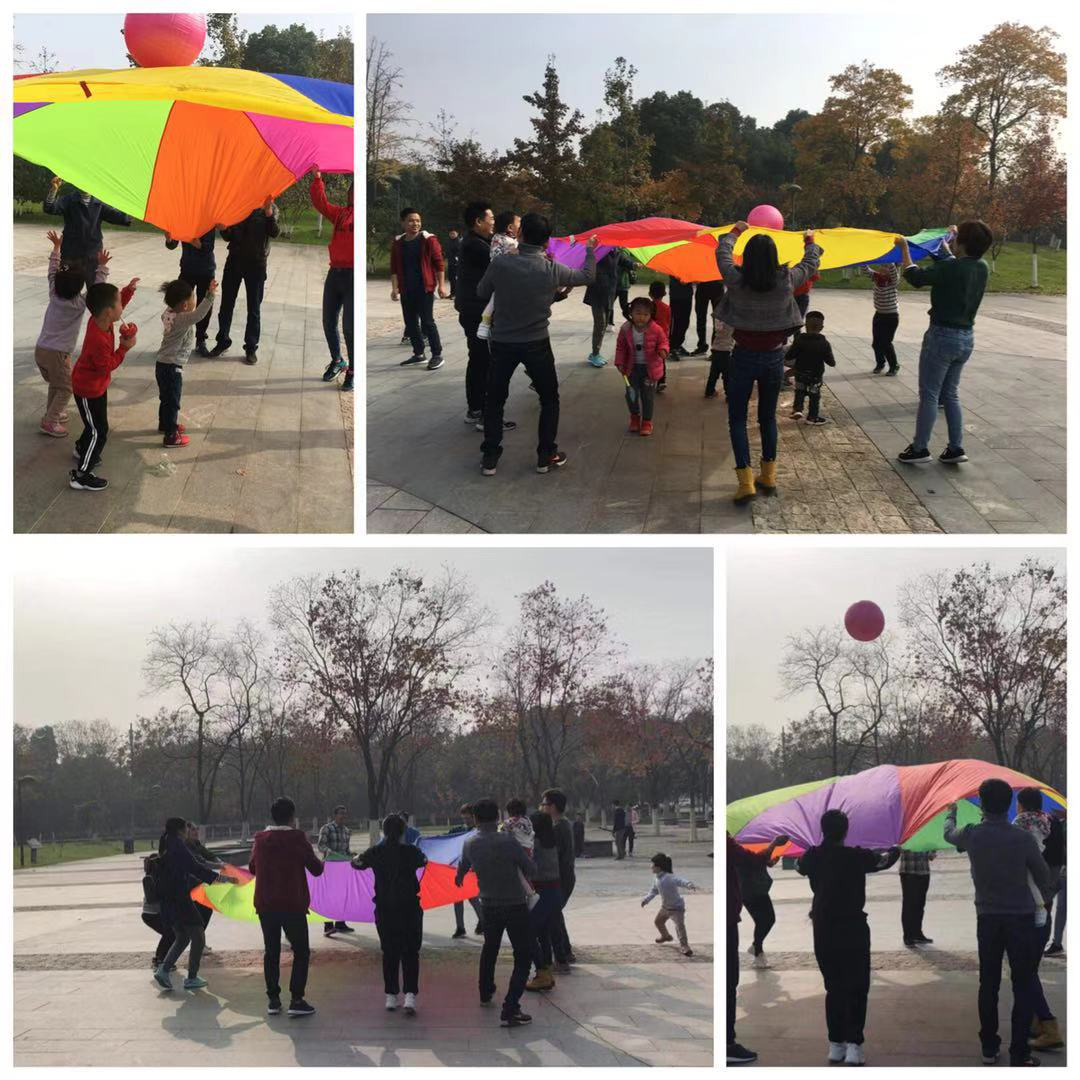 彩虹傘,看似簡單,卻要求大人們配和默契。孩子們也在傘下玩的不亦樂乎