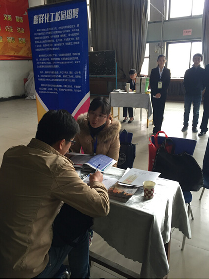 2015年11月14日,麒祥化工參加蘭州大學以及蘭州理工大學的校園招聘。此次校園招聘由江蘇省淮安市人才中心統(tǒng)一組織。參加企業(yè)眾多,招聘現(xiàn)場人山人海。