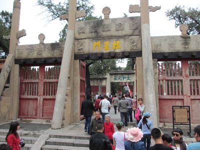 首先我們去了孔廟,在中國,孔廟有很多,但歷史等級應屬位于山東曲阜市南門內的第一座孔廟,它又稱圣廟,與北京故宮、承德避暑山莊并稱東方三大古建筑群。我們沿著護城河慢慢向前走, 看著這些古老威嚴的建筑,驚嘆古人的偉大和智慧。