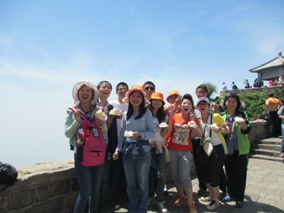 5月19日早晨我們驅車赴泰山。早上我們徒步上山,途游云步橋、五大夫松、朝陽洞、迎客松、經十八盤、至南天門、天街、望吳勝跡、青帝宮、拱北石,路上風光無限,我們跟隨著帝王,名人的足跡留下那些美麗的風景和各種風格的名人書法,開闊了眼界。走進泰山,就是走進歷史。從泰城西南祭地的社首山、蒿里山至告天的玉皇頂,數不勝數的名勝古跡、摩崖碑碣遍布山中。下午我們游覽的是岱廟,岱廟又稱東岳廟或泰山廟. 是泰山完整的古建筑群,為道教神府,是歷代帝 王舉行封禪大典和祭祀泰山神的地方。到達山的終點----玉皇頂,體驗會當凌絕頂、一覽眾山小的豪情。