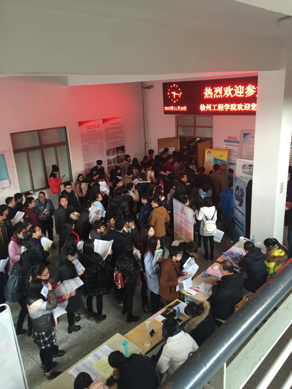 2015年11月29日,麒祥來(lái)到美麗的徐州,參加徐州工程學(xué)院2016屆畢業(yè)生就業(yè)雙選會(huì)。此次參會(huì)企業(yè)眾多,招聘現(xiàn)場(chǎng)人頭攢動(dòng)。雖然天氣寒冷,但是仍不減同學(xué)們的熱情。