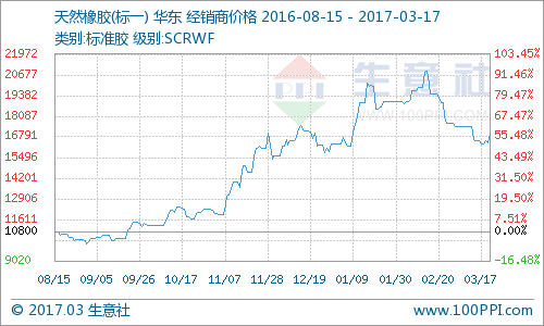據(jù)生意社價(jià)格監(jiān)測(cè)本周天然橡膠價(jià)格走勢(shì)下滑,本周初天膠價(jià)格為16350元/噸,周末價(jià)格為16970元/噸,價(jià)格下滑3.77%。