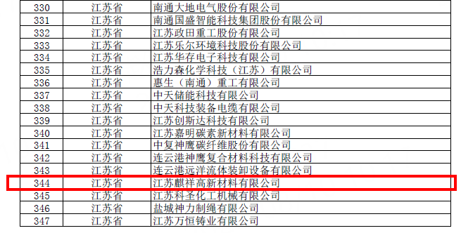 2022年8月8日,工信部委托江蘇省工信廳公示了第四批專精特新“小巨人”企業名單,麒祥新材料下屬子公司江蘇麒祥高新材料有限公司成功入選,榮獲專精特新“小巨人”稱號,實現了淮安工業園區專精特新“小巨人”企業零的突破。