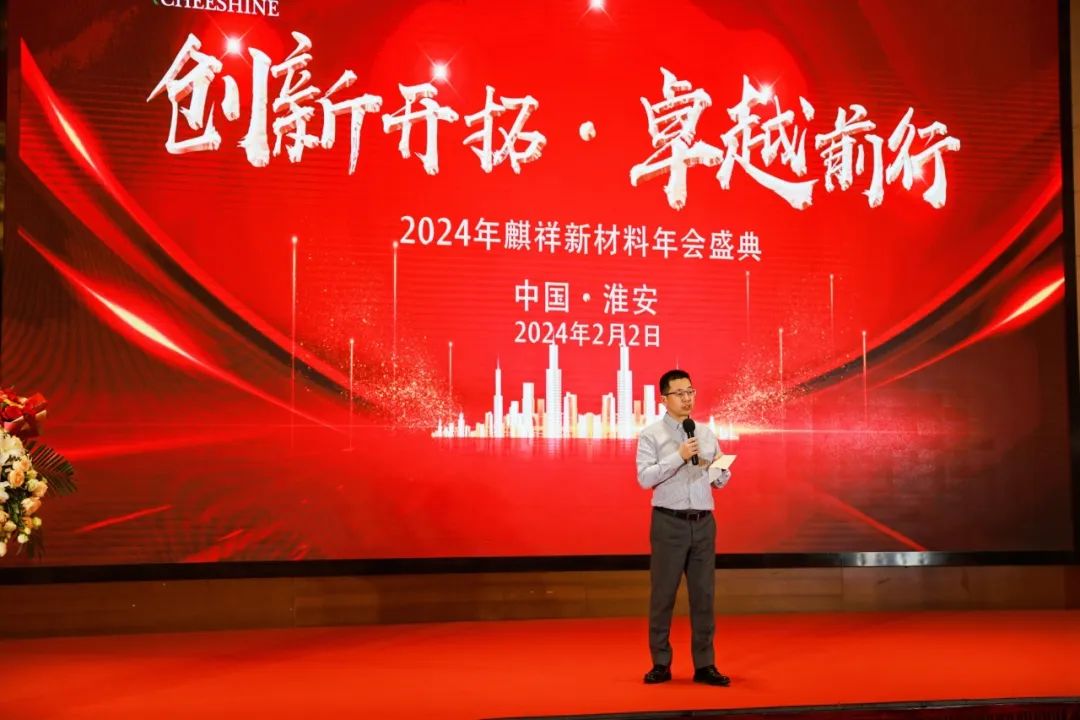 兔毫繪就豐收景,龍筆揮成錦繡春!2024年2月2日下午,2024麒祥新材料年會盛典在淮安市國聯(lián)奧體名都酒店盛大舉行。麒祥新材料各子、分公司非一線員工全體出席。出席此次年會盛典的高管有:麒祥新材料董事長姚翔、總經(jīng)理尹興昌、常務副總彭華龍、副總經(jīng)理陳熾;江蘇麒祥副總經(jīng)理房建明、王建、郭潤喜;山東麒祥副總經(jīng)理李智民、薛勇。